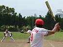 ▼猛暑のなか試合開始。先発ナカムラは2回にエラーで1点を失うがそれ以外はまとまったピッチング。