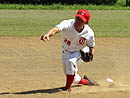 ▼6回カンノが死球で出て二盗。コオリの内野ゴロエラーで同点。