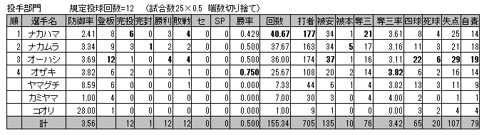 | 最多奪三振 | ナカハマ | 21個 | 11年連続11回目 |