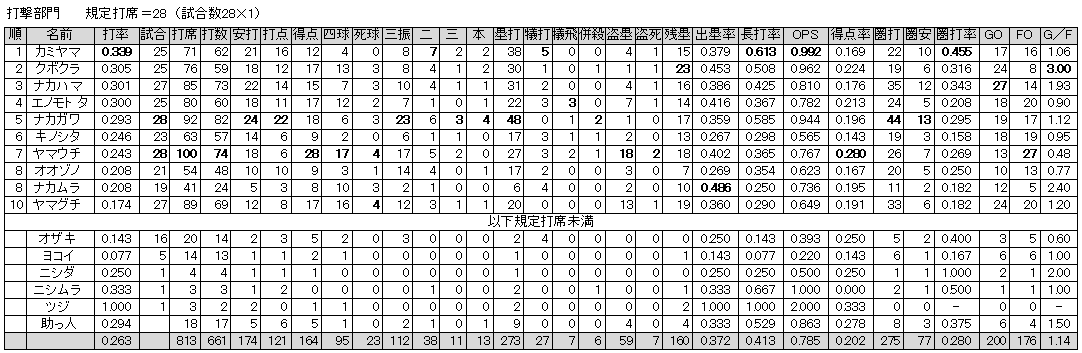 | 最優秀得点率 | ヤマウチ | .280 | 3年連続3回目 |