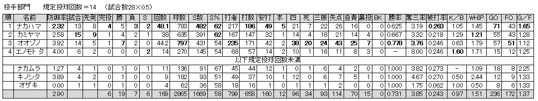 | 最優秀防御率 | ナカハマ | 2.32 | 2年連続7回目 |