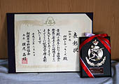 T軍は加盟10年表彰を受けた(写真は賞状と記念盾)。