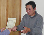 【戦評】 「一年で一番大事な日」と語る本命コオリ。入団時から 「ボウリングでは負けない」と大口を叩きながらトラッキー ズでの対決では幾度も苦汁を舐めてきた男が今回は マイボール、マイシューズ持参で必勝体勢。ベストには ほど遠いスコアながら悲願の初優勝を勝ち取る。 |