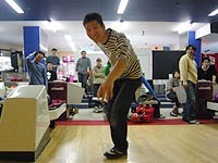 新人ナカハマも「ボウリングはまかせろ」と自信をみせ ビッグマウス2号を襲名。序盤は噂にたがわぬボール を投げるが新勢力には容赦しないT軍ボウラーのプ レッシャーに飲まれたかスコアが伸びず結局4位。 毎回それなりの結果を出すナカムラ、コダイラが2G目 で巻き返し2位、3位に入った。 | |