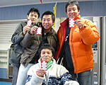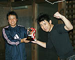 が同一チームということで団体戦もこの時点で1位と3 位が110ピン差となる。低調なボウリングは2G目も変わ らず。終わってみると事前に会場に乗り込み徹底的に 特訓をしたコオリチームが団体戦を圧勝。そして個人戦 でも2位に50ピン差の大差でコオリが2連覇を達成した。 2Gとも100を切ったムコーヤマがあまりにも予想外。 | |