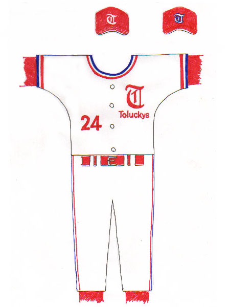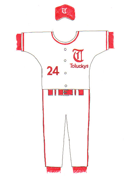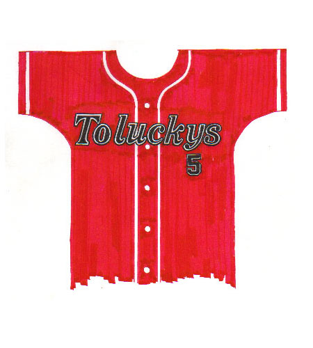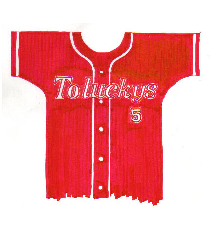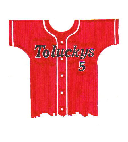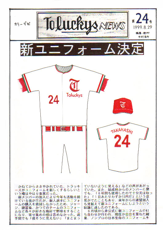 結局ノンプロの日本生命のユニフォームをパクる方向に落ち着く。胸マークも左側にTの文字と チーム名、右側に番号を配することで合意に達し、最終案が完成した。 |