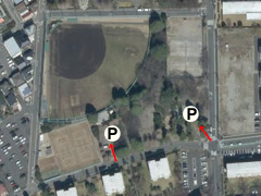 ※駐車場は拡大図のPのところ。満車のときは下写真右の松林に停めるが交差点から斜めの進入になるので入れづらい。 最近路駐は厳しいらしい。