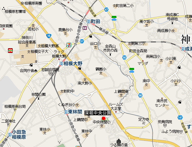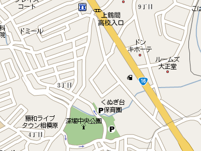 国道16号を角にローソンのある信号を曲がる。駐車場前の道は一方通行なので、 深堀公園を左回りに迂回しながら駐車場へ。