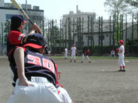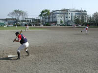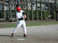 ルーキ−のタバタ、伸び上がり打法でボールに食らいつく
