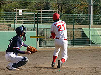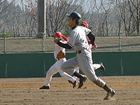 アマノ自らのバットで同点の三塁打